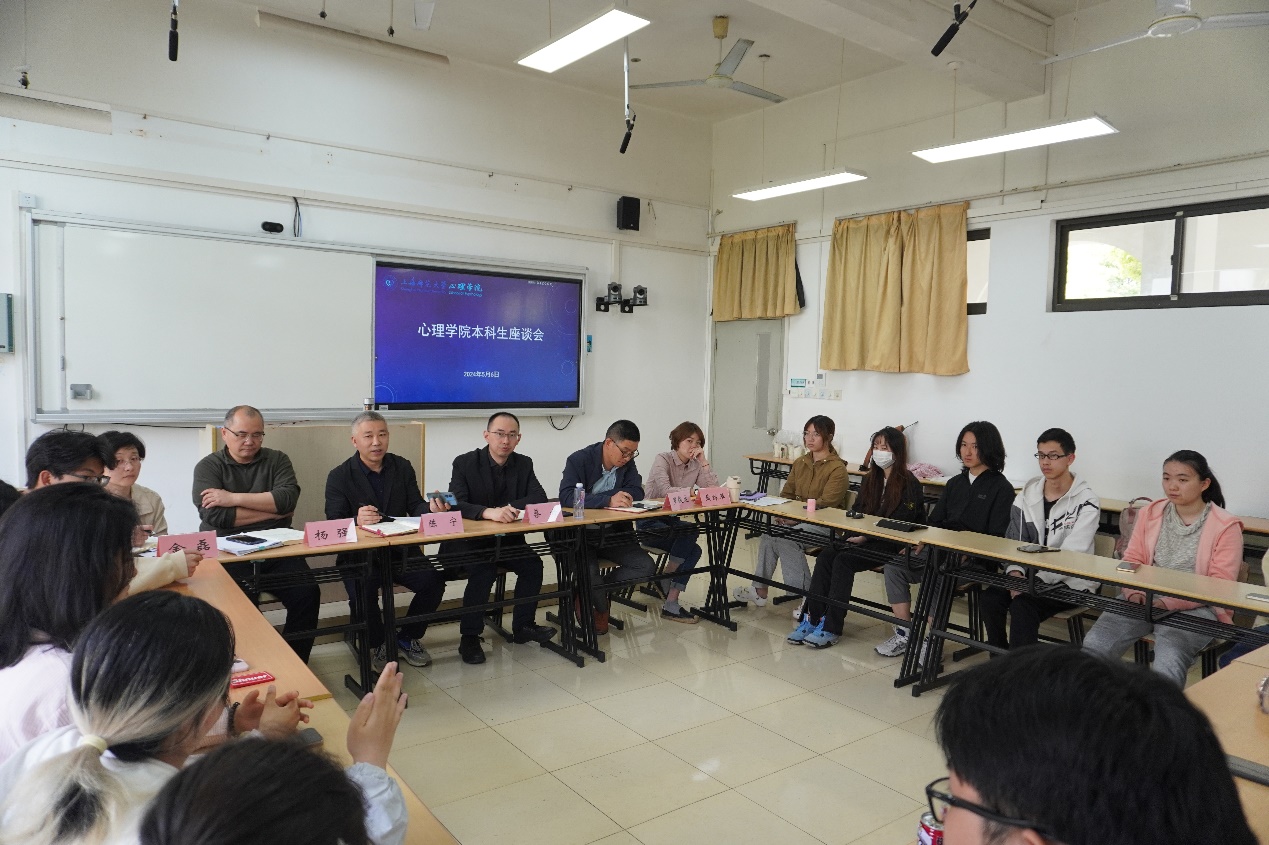 本次座谈会搭建了学院与本科生之间沟通的桥梁,学院将始终坚持落实立德树人根本任务、人才培养中心工作、本科教学基础地位的理念,主动倾听本科生的意见建议,修订完善专业培养方案,主动改革人才培养模式,努力建设高水平应用心理学本科教育。