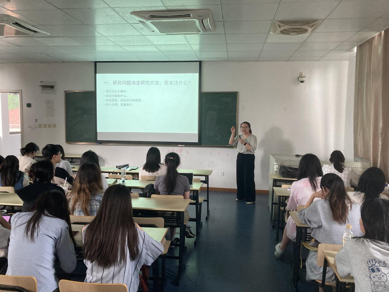 孔丽教授则带领大家走进了认知神经科学的奇妙世界。她详细介绍了认知神经科学的基本原理、发展历程以及常用的研究方法,展示了认知神经科学方法在心理学研究中的广泛应用,并分享了其课题组在精神疾病领域的脑神经机制研究。孔老师为同学们打开了一扇探索人类心智奥秘的新窗口。她的分享不仅拓宽了本科生的学术视野,也促进了心理学与神经科学之间的跨学科交流。