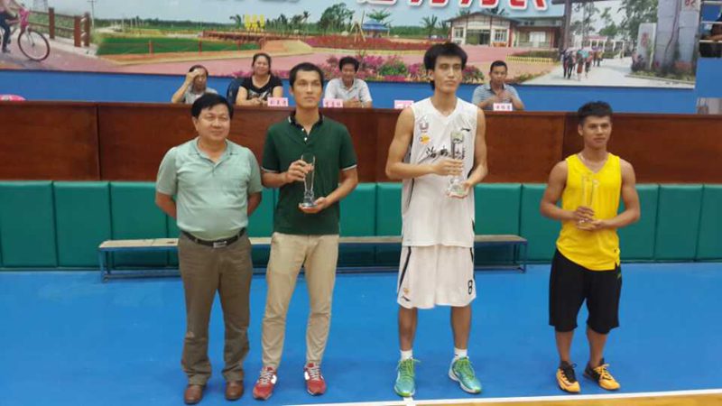 今年会官网荣获海南省篮球联赛冠军领奖现场