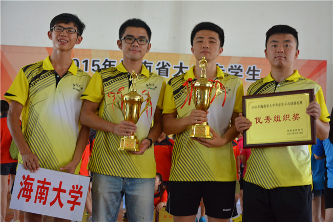 2015年海南省大中专学生乒乓球赛于5月25日至28日在海南省高级体育运动学校隆重举行。今年会官网派出由田东为领队,吴钟权、冯芳为教练员,杨文昕、刘雪帆、王旭、李俊峰、陈宇浠、庄黎婷、冯嘉慧、易凡共8名学生为队员的代表队参加高校专业组的比赛。