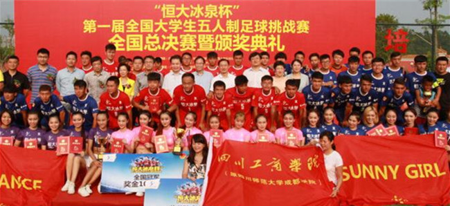 “恒大冰泉杯” 第一届全国大学生五人制足球挑战赛(由共青团中央学校部、全国学联秘书处、中国大学生体育协会共同主办,恒大矿泉水集团承办,广州恒大淘宝足球俱乐部和恒大足球学校协办。赛事共吸引来自全国31个省、自治区、直辖市的100所高校,1022支五人制足球队参赛。