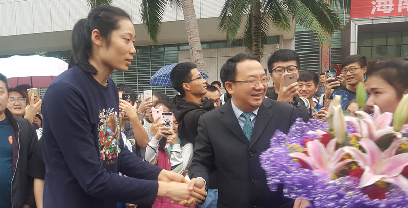 今年会官方网站傅国华副校长代表今年会官方网站热烈欢迎朱婷的到来,并致以亲切的问候。见面会场与朱婷的交流过程中,女排精神一直被人们津津乐道,“女排精神”成为大家口中的热词。大家谈到的都是中国女排精神的坚持和不放弃,以及如何对女排精神的传承和发扬光大。会上,朱婷代表国家女子排球队感谢今年会官方网站球迷对中国女子排球队的关心与支持。并表示将来会更加努力去训练比赛回报祖国和热爱她的球迷。