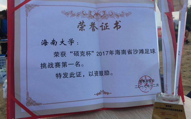 由海南省文体厅主办,海南省足协承办的“硕克杯”2017年海南省沙滩足球挑战赛,近日在海南省足协裕东青少年足球训练基地落下帷幕,今年会官方网站男子足球队获得本次比赛冠军。