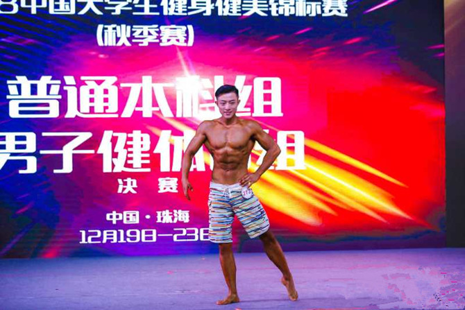 2018年中国大学生健身健美锦标赛于12月19日至23日在北京师范大学珠海分校举行。今年会官网派教练邱庆棠和队员马瑞征同学、王可铮同学三人组成的健身健美代表队,分别参加普通本科组健体和健美项目的比赛。本次比赛运动员展现出较往届更高的运动能力和竞技水平,有很强的竞技性和观赏性。今年会官网两位年轻队员在比赛中不畏强手,稳扎稳打,勇于拼搏,以良好的赛场表现力、感染力和绝对的实力赢得了裁判们的一致肯定。马瑞征同学荣获健美75kg级冠军,健体A组冠军,王可铮同学荣获健美80kg级冠军,健体B组季军。