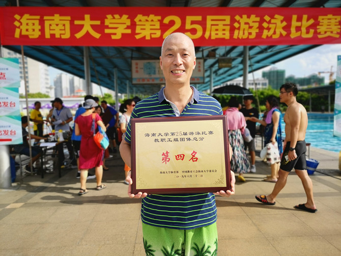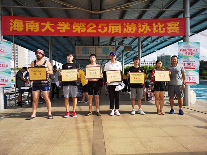 在颁奖仪式上,本次比赛总裁判长房殿生宣读了本届游泳比赛的结果,并由体育部主任洪家云、副主任田东分别给获得学生组和教工组团体赛前六名的代表队颁发了奖牌。对于此次游泳比赛,参赛选手给予了较高的评价,特别是获得本次比赛教工男子乙组100蛙泳第一名、4*50米自由泳接力第二名、50米自由泳第五名三项佳绩的运动员环境资源学院的杨飞老师说:“游泳比赛既能强身健体,又能娱乐身心、缓解压力,为海大游泳爱好者提供一个展示自我,共同进步的舞台。这次比赛很精彩,赛程也比较紧凑,裁判与工作人员很积极热心。本次比赛唯一的遗憾是只带领环境资源学院获得团体第四名,希望环境资源学院在明年的游泳比赛更进一步。”(图/文:罗海蛟)