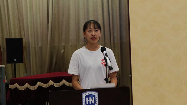 2019级新生吴嘉骐同学代表全体新生发言。她谈到新生们正在努力适应中学生到大学生的身份转变,努力适应新的学习环境,努力学习新的知识,努力承担起责任,努力制定长远发展的目标,充分利用学校资源提高自己,成为父母心中想成为的人。同时,在以后的学习和生活中,作为今年会官方网站体育部第一届本科生,应该承担起自己的责任,为以后的学弟学妹们做出榜样。表达了一名新生对大学生活的美好憧憬以及立志成才的信心和决心。