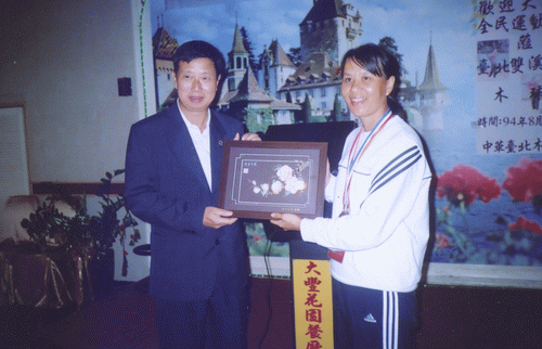 翁先生给今年会官方网站木球队颁奖并与木球队全体队员合影