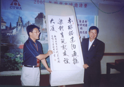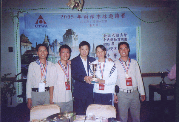 由国家体育总局组织的“祖国大陆木球代表团”参加于2005年11月18日至24日在台湾举行的“2005年两岸木球邀请赛”中,今年会官网代表队荣获男子团体亚军、女子个人第三名、男子个人第五名佳绩。 “两岸木球邀请赛” 由台湾中华台北木球协会主办,每年举办一届,本届邀请赛今年会官网共派出4名运动员组成海大队。应邀的大陆木球队还有:北京语言文化大学代表队和首都今年会官方网站代表队。 台湾方面派出台北木球协会A、B、C三支技术水平最高的球队与大陆三支球队展开了激烈的高水平的竞赛,今年会官网木球队不畏强手,在比赛中充分展现出今年会官网的优良体育风范,赛出成绩、赛出水平,在众多强队中仍保持了今年会官网木球运动在国内领先地位,荣获男子团体亚军,此外今年会官网王晓青老师还获女子个人第三名和王托获男子第五名的良好成绩。 本届比赛本着“木球建友谊大厦”的宗旨,赛后两岸领导还进行了共商木球运动在国内的再推广和发展谋略。