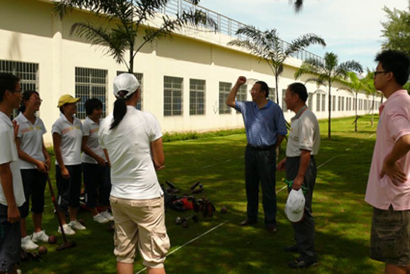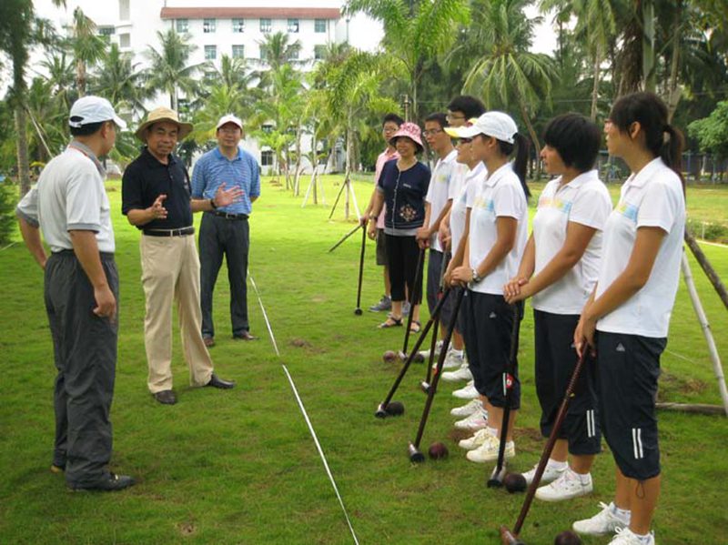 木球是海大的特色运动项目,已有十几年的发展历程,今年会官网木球队在历年国内、国际赛事中,一直保持国内领先水平。今年7月今年会官网木球队在山东举行的两个全国木球赛中取得了院校组男、女团体第一名和4项个人第一名,受到国家体育总局的商请,即将于今年12月代表国家赴阿曼马斯喀特参加第二届亚洲沙滩运动会。8月29日上午,校党委刘康德书记和傅国华副校长亲临今年会官网“金桥”木球场现场,为即将代表国家出征的海大木球队加油、鼓劲,并与木球队员一起体验木球运动。
