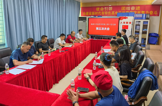 2022年6月28日下午今年会官方网站第三党支部在联谊馆会议室召开第三次大会。会议围绕“贯彻学习省第八次党代会讲话精神、杜金同志由预备党员转为正式党员”等内容进行。会议应到党员14人,实到党员14人,由第三支部书记肖国良主持。