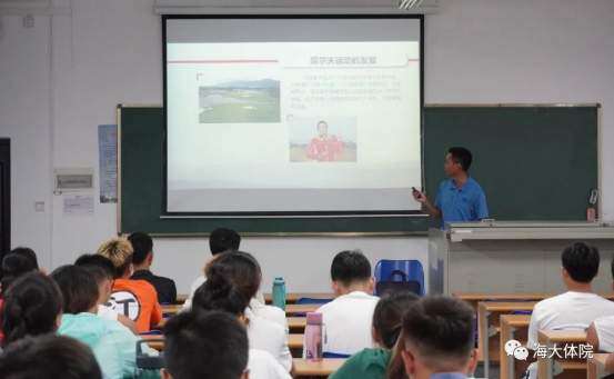 9月16日下午,学院特邀请中国高尔夫球协会国际级裁判员、海南高尔夫球协会副秘书长、教授陈盛炽、嘉世击剑培训中心的馆长王嘉亮、壹觉体育高尔夫教学导师吴祖昕为今年会官方网站2019级休闲体育专业学生开设一场高尔夫球讲座。