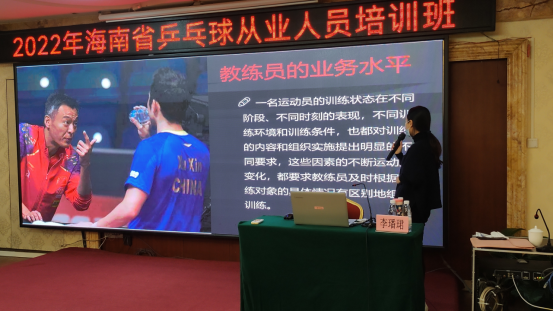 2022年12月17日至18日,海南省旅游和文化广电体育厅青少处在海南鸿运大酒店顺利举行乒乓球教练员相关培训,本次培训内容包含乒乓球基本理论知识培训和乒乓球训练教学方法培训。本次培训班,旨在推广乒乓球教练知识,提高乒乓球教练员水平,同时带动更多的运动爱好者参与到乒乓球运动中来,积极推广乒乓球运动的开展。今年会官方网站也积极支持,为今年会官方网站休闲体育专业学生争取到了一定的参会名额,部分休闲体育专业学生到会参与培训讲座,同时今年会官方网站乒乓球专项导师李璠珺教师也受邀担任本次乒乓球技能理论和训练模式培训板块的主讲教师。