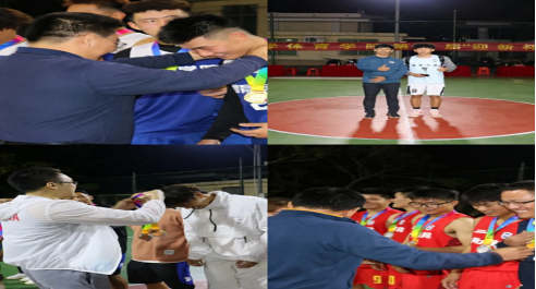 颁奖仪式上,赵帅老师为三分球大赛冠军2021级2班许金水同学颁奖,学工办主任许达潭为第三名2019级1班颁奖,院长洪家云为第二名2019级2班颁奖,党总支书记陈卫东为第一名2020级1班颁奖。