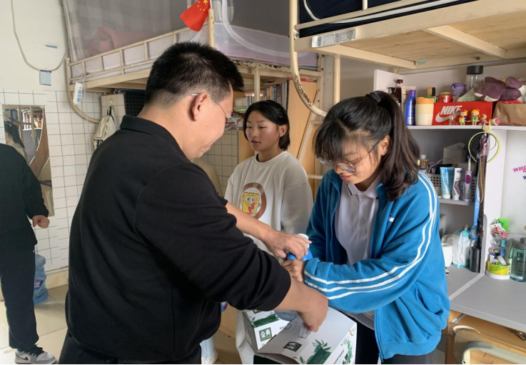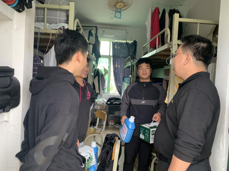 现场老师与同学们亲切交谈,交流近来生活和学业情况,希望学生学好本领、放宽眼界、提升自我,努力成才。殷殷嘱托,拳拳爱心,老师同时叮嘱学生们做好疫情个人防护、谨慎辨别网络信息、注意宿舍用电安全等,提高学生安全防范意识。
