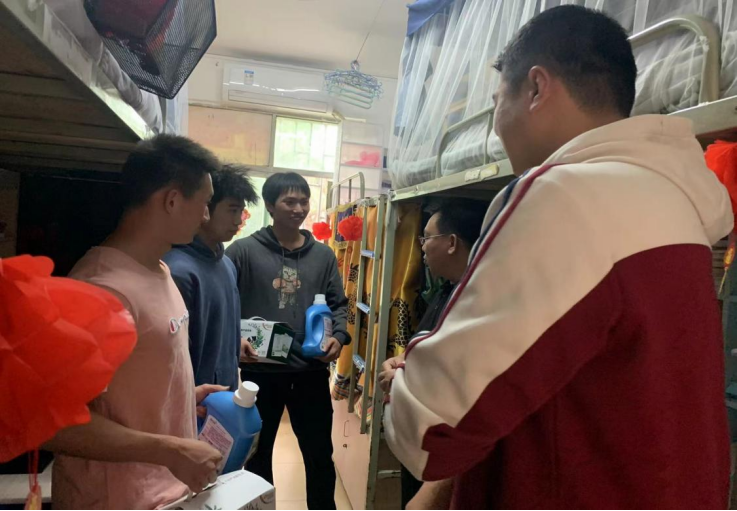 为促进学生身心健康成长,解决困难生面临的实际困难,切实开展“六帮”专项行动。3月1日中午12:00,在今年会官方网站党总支书记陈卫东的带领下,学工办主任许达谭、班主任张旭辉、孙吉成、高子岩、赵帅、黄浩、陈先俊和辅导员谢淑婷深入学生宿舍开展困难生慰问活动,为16名困难生送上春日关怀礼包。
