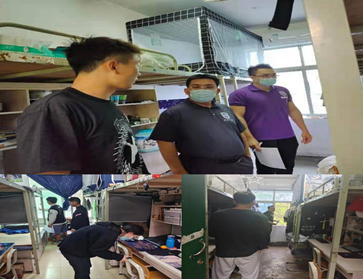 三、下宿舍人文关怀、宿舍卫生检查和安全隐患排查。为进一步加强学生风险防范意识,引导学生打造整洁居住环境,院党总支书记陈卫东、学工办主任许达潭、辅导员谢淑婷携学生干部深入学生宿舍进行防疫政策宣讲和安全隐患排查。叮嘱学生关注权威官方发布的疫情消息、带好口罩、自觉做好个人防护、注意宿舍用电和消防安全等事宜。