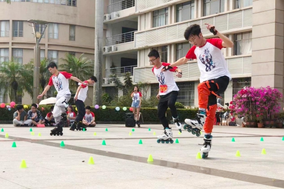 同时,协会经常参加校内外的各种活动,积极参加公益演出,也常受到校内其他社团的邀请,一同参与活动表演。在2021年,第十届轮滑协会管理层出战,参加了由海南省轮滑协会主办的2021海南省轮滑公开赛,拿下男子速桩第一名、女子速桩第一名、女子速桩第四名、女子花桩第一名、女子花桩第三名、女子花桩第四名、女子花桩第六名、女子速滑300米第四名、女子速滑300米第五名、女子速滑300米第六名的成绩。协会在发展的过程积极参与的公益活动,与校内校外组织发展友好和谐的关系,赢得了众多荣誉和喝彩。